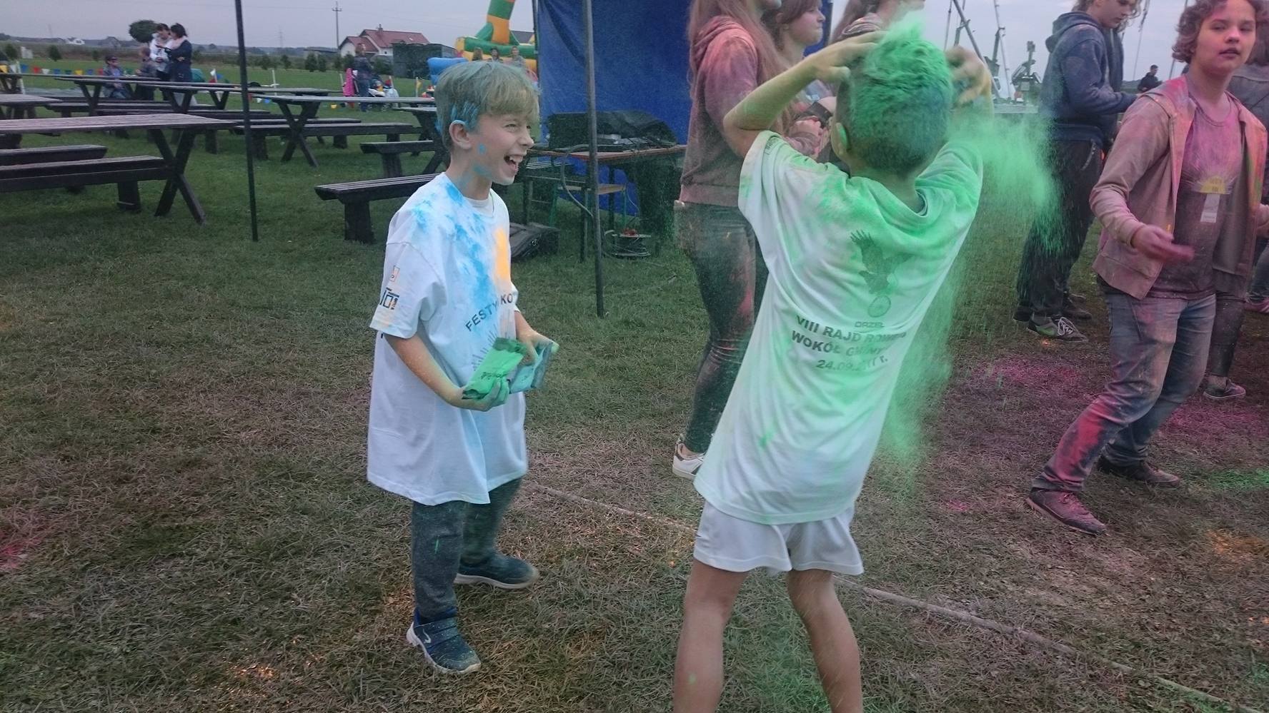 Finałem projektu był festyn rodzinny, podczas którego młodzież zaprezentowała swoje prace oraz zorganizowała zabawę z wyrzutem kolorowych proszków.